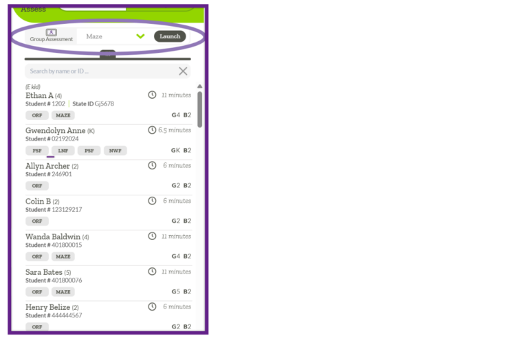 When assessing a group of students use the “Group Assessment” option for Maze and click “Launch.”