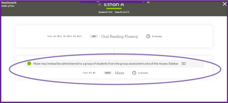 If you are assessing an individual student, select the student from the list, and select the Maze Measure.