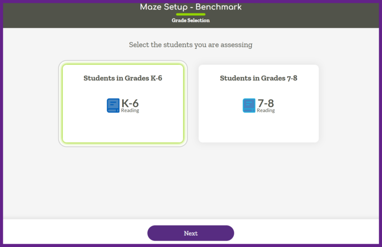 The Maze measure can be administered digitally to a whole class, a small group of students, or an individual student. The test administrator can use a computer or touchscreen device (tablet-size or larger), and each student will need their own computer (laptop/desktop) or touchscreen device (iPad, tablet, or Chromebook).