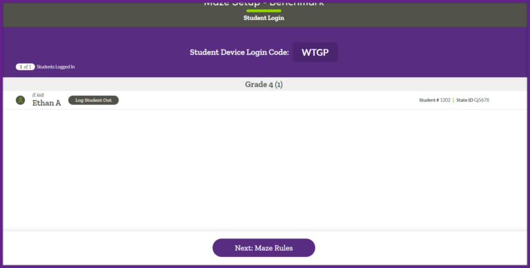 Once all students have logged in the “Next: Maze Rules” button appears. Click “Next: Maze Rules” to proceed.