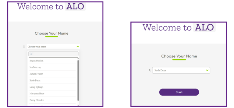 Have the students select their name from the dropdown list. Once their name is selected they will click “Start.”