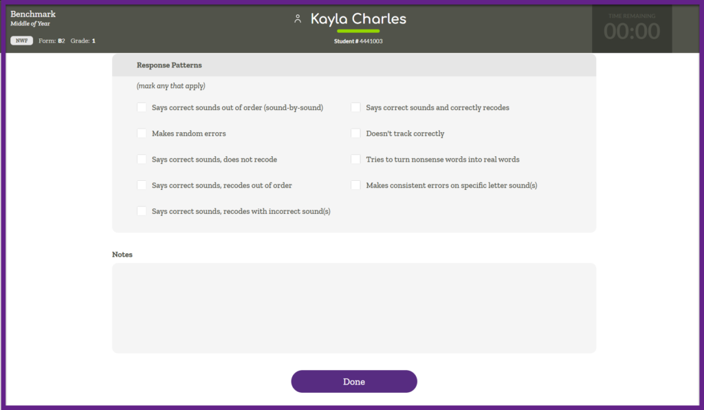You have the option to mark any Response Patterns and to leave any notes that were not captured in the response patterns listed. Click “Done” at the bottom of the screen.