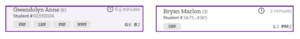 Find the name of the student that you want to assess on the list. The box for the student contains relevant information. Under the student’s name the measure(s) that are due to be administered are listed. On the top right hand side the amount of time it will take to complete the assessment is provided. On the bottom right hand corner the forms that will be used are listed.